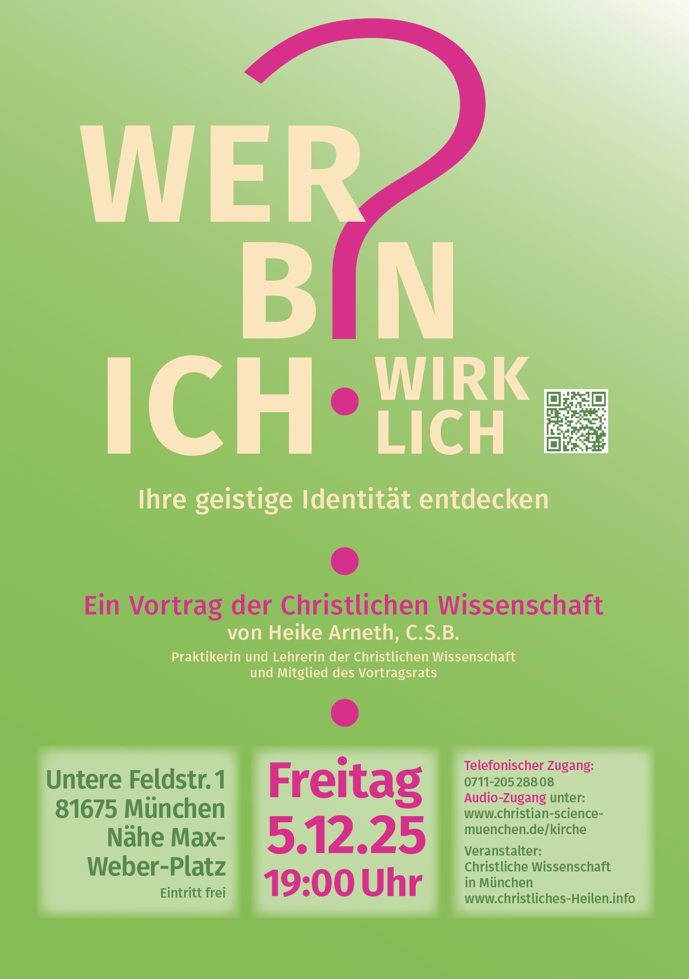 Der Vortrag findet am Freitag 5.12.2025 um 19h00 statt. Adresse: Untere Feldstr. 1, 81675 München.